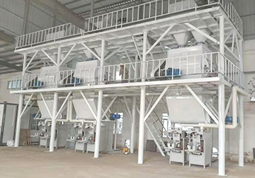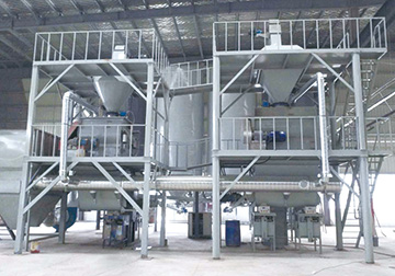 5、当干混砂浆进入搅拌机后,在搅拌机推进端进行预搅拌,然后通过螺旋喂料机进行强制式定量输出。